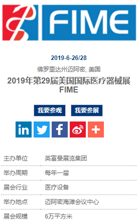 FIME展會共有90多個國家、 1500多個參展企業和22000多名買家參加。 FIME展會被美國貿易展周刊《 Trade Show Weeks》評為發展最快的50個展覽會之一,是美國東南部地區最大的醫療設備及器械專業展覽會。 FIME展會的特點是地區性和國際性兼備。除了主要來自美國佛州的參展商和專業觀眾外,展會利用邁阿密毗鄰加勒比海的特殊地理位置,吸引了大量來自南美國家的參展商和專業觀眾,因為許多產品是通過邁阿密轉口至加勒比海地區國家的。
